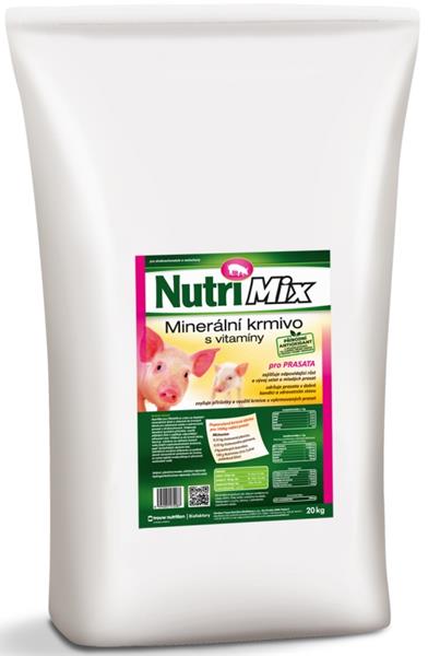 PROBLÉM Nedostatečná nebo nevyvážená krmná dávka pro prasata v odchovu nebo ve výkrmu má za následek snížené přírůstky, nižší využitelnost krmiva, menší životaschopnost a horší zdravotní stav. ŘEŠENÍ Nutrimix pro prasata je určen na doplnění minerálních látek a vitaminů do krmných dávek pro odstavená selata a vykrmovaná prasata v drobnochovech. Podporuje dosažení vysokých přírůstků, využití přijatých živin a zajišťuje odpovídající zdravotní stav. Přidává se do krmné dávky, která je založena na obilných šrotech nebo jiných neplnohodnotných krmivech, popř. kuchyňských zbytcích atd. SLOŽENÍ v 1 kg: vápník 180 g, fosfor 33 g, sodík 20 g, lysin 42 g, methionin 1 g, threonin10 g, vitamin A 85 000 m.j., vitamin D3 15 000 m.j., vitamin E 150 mg, vitamin B2 40 mg, vitamin B12 0,2 mg, betain 900 mg, železo 500 mg, zinek 1 310 mg, měď 230 mg, mangan 450 mg, jod 10 mg, selen 2,8 mg, přírodní antioxidant 100 mg, bylinné extrakty na zlepšení příjmu krmiva a redukci tvorby amoniaku 2 700 mg. ZPŮSOB APLIKACE Odměřené množství přípravku se podává denně rovnoměrně zamíchané do krmiva. Je nutné zajistit trvalý přístup k zdravotně nezávadné vodě. DÁVKOVÁNÍ Selata 8 - 20 kg živé hmotnosti: 30 - 60 g / 1 ks / den Prasata 20 - 100 kg živé hmotnosti: 60 - 120 g / 1 ks / den Prasata nad 100 kg živé hmotnosti: 120 g / 1 ks / den (1 plná polévková lžíce - cca 33 g) DOPORUČENÁ KRMNÁ DÁVKA PRO 100 KG VÁŽÍCÍ PRASE: míchanice - 350 g pšeničného šrotu, 350 g ječného šrotu, 2 kg pařených brambor, 100 g Nutrimixu pro prasata.
