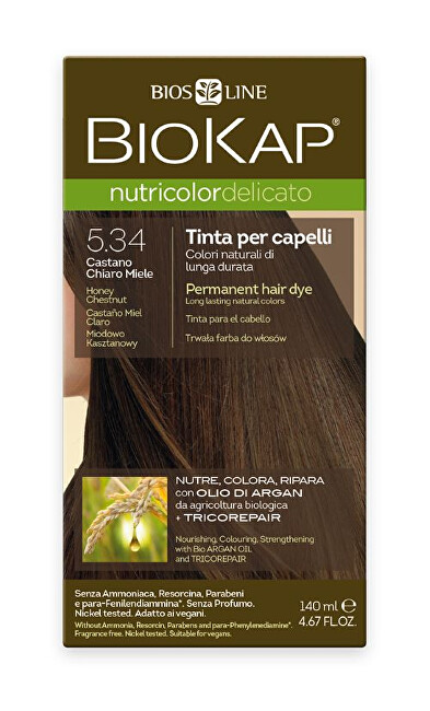 NUTRICOLOR DELICATO - Barva na vlasy - 5.34 Medová kaštanová je z 92% přírodní produkt.
