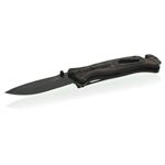 Pomocný výstupek čepele a ergonomické tvarování střenky umožní snadné a bleskurychlé otvírání nože jednou rukou. Nůž je vybaven bezpečnostní pojistkou, která se ovládá bočním posuvem palce ve spodní části rukojeti, takže nehrozí samovolné otevření.