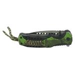 Nůž uchopíte za ergonomicky tvarovanou střenku rukojeti. Díky ní se vám v ruce pohodlně drží. Navíc je rukojeť opletená paracordem, který po odšroubování krytu rozpletete a použijete jako šňůru. Nůž snadno přichytíte třeba za okraj kapsy pomocí klipsu.