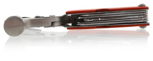 Využijte všechno nářadí a pomůcky, které nůž poskytuje. Najdete v něm kladivo, sekyrku, kombinované kleště, nůž délky 7 cm, křížový šroubovák s běžnými rozměry, pilku na dřevo, odstraňovač šupin, pilník se zakončením, plochý šroubovák, otvírák a kombinovaný imbusový nástavec.