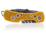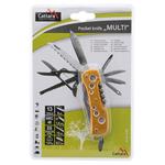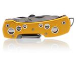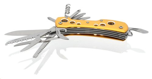 Do základní výbavy Cattara Multi patří 6cm čepel nože, otvírák na zátky i konzervy, vývrtka nebo plochý i křížový šroubovák. Opravdoví outdoorový nadšenci pak ocení pilku na dřevo, pilník, nůžky či oko na hrubé šití. Rybáři budou především chválit praktický zabudovaný škrabák na rybí šupiny, který se hodí pro všechny milovníky receptů z ryb. To vše se schovává v rukojeti vyrobené z hliníku ve žlutém až zlatavém provedení s perforací vrchní i spodní strany. Rukojeť je vybavená zabudovaným kroužkem pro uchycení nožíku, takže jej můžete pověsit kamkoliv.