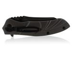 Pomocný výstupek čepele a ergonomické tvarování střenky umožní snadné a bleskurychlé otvírání nože jednou rukou. Nůž je vybaven bezpečnostní pojistkou, která se ovládá bočním posuvem palce ve spodní části rukojeti, takže nehrozí samovolné otevření. Pojistka Liner Lock brání nechtěnému zavření čepele při práci. Rukojeť s atraktivní perforací obou střenek je na zadní straně vybavena klipsem k přichycení za okraj kapsy či opasek. Střenky jsou kvalitně zpracovány z nožířské oceli 420J1 potažené titanem.