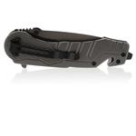 Pomocný výstupek čepele a ergonomické tvarování střenky umožní snadné a bleskurychlé otvírání nože jednou rukou. Nůž je vybaven bezpečnostní pojistkou, která se ovládá bočním posuvem palce ve spodní části rukojeti, takže nehrozí samovolné otevření. Pojistka Liner Lock brání nechtěnému zavření čepele při práci.