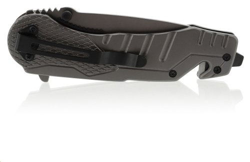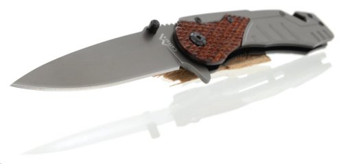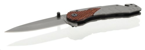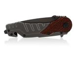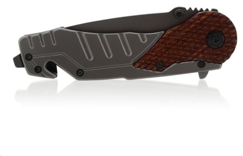 Střenky rukojeti jsou z jedné strany doplněny o dřevěnou drážkovanou oporu palce a druhá strana je vybavena klipsem k přichycení za lem kapsy nebo opasek. Střenky jsou ergonomicky tvarovány a kvalitně zpracovány z oceli 420J1 potažené titanem. V zadní části naleznete ještě břit pro řezání provazů nebo plastových pásek či ocelový klín pro různé využití (rozbíjení ořechů, kokosů apod.).