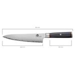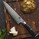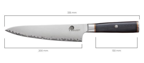 Pořiďte si opravdu kvalitní nůž v japonském stylu. Jeho jádro tvoří 2 vrstvy nerezové oceli rozdílných tvrdostí. Díky těmto vrstvám je nůž mimořádně odolný. Čepel v matném odstínu (takzvaný stonewashed) zdobí úchvatné broušení. Tato úprava skryje škrábance. Jelikož je nůž mimořádně ostrý, zachovají si krájené potraviny svůj tvar a strukturu.