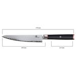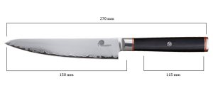 Pořiďte si opravdu kvalitní nůž v japonském stylu. Jeho jádro tvoří 2 vrstvy nerezové oceli rozdílných tvrdostí. Díky těmto vrstvám je nůž mimořádně odolný. Čepel v matném odstínu (takzvaný stonewashed) zdobí úchvatné broušení. Tato úprava skryje škrábance. Jelikož je nůž mimořádně ostrý, zachovají si krájené potraviny svůj tvar a strukturu.