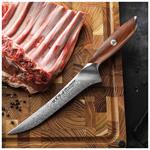 Dellinger Boning Rose Wood Damascus® je špičkový vykosťovací nůž, který díky extrémně tenké čepeli zvládne oddělit maso od kosti bez zbytečných ztrát. Elegantní design s damascénským vzorem z něj dělá nejen funkční nástroj, ale i sběratelský kousek.