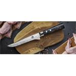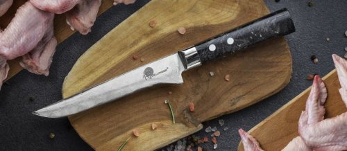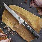 Vykosťovací nůž Boning patří do řady Carbon Fragment. Řada je pojmenována podle materiálu, který se používá k výrobě rukojeti tohoto nože. Mluvíme o karbonu. Díky použití tohoto materiálu je rukojeť nožů z této řady velmi kvalitní, odolná a zároveň opravdu lehká. O pevné spojení damaškové oceli a rukojeti se postará dvojité nýtování.