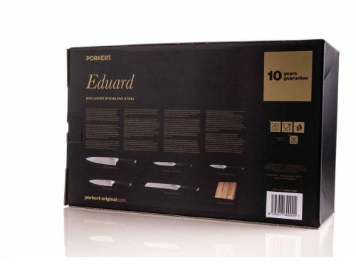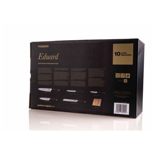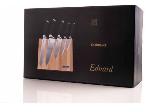 Víte, co je dokonalý dárek pro každého kuchaře? Špičková sada nožů z německé oceli s designovým bambusovým blokem. Obdarujte sebe i ostatní dárkem, který nesmí chybět v žádné kuchyni. Precizní práce s nožem je zážitek. Vychutnejte si ho při krájení pečiva, sekání zeleniny i odkrajování jemných plátků masa. Nože Eduard jsme pro vás vyrobili z ušlechtilé německé oceli a ostří vybrousili do nejvhodnějšího úhlu tak, aby bylo krájení s nimi dokonale přesné a snadné.