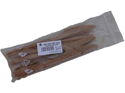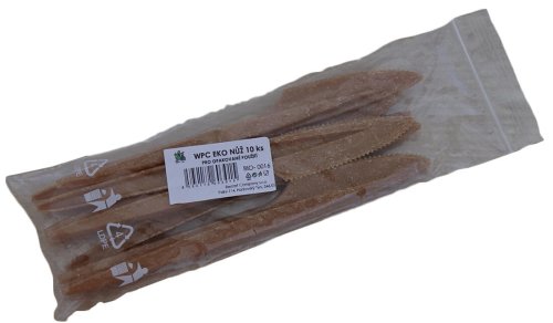 Ekologické kompozitní příbory vyrobené z WPC materiálu (dřevo/plast) jsou vhodné k jednorázovému i opakovatenému použití. WPC materiál je velmi odolný vůči vysokým teplotám (do 100°C). Příbory lze opakovaně umývat v myčkách. Inovativní velmi odolný a pevný nůž je vyrobený z WPC materiálu, který kombinuje nejlepší vlastnosti dřeva a plastových polymerů. Nůž je opakovaně použitelný, 100% recyklovatelný, odolný vysokým teplotám, vodě i mastnotě.