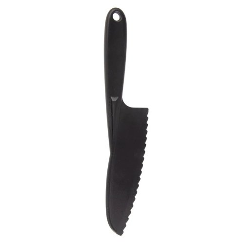 Nůž s vlnitým ostřím je vhodný pro šetrné porcování dortů nebo koláčů ve formách s nepřilnavým povrchem. Dále s ním můžete krájet lasagne, zapečené brambory a nemusíte se bát, že poškodíte plech, pekáč nebo formu s nepřilnavým povrchem. Umožní vám také krájení na silikonovém vále. Materiál termoplast PBT. Celková délka 24.5 cm, délka čepele 14 cm. Lze používat až do teploty +200 °C. Je vhodný do myčky nádobí. EAN 8592381215552