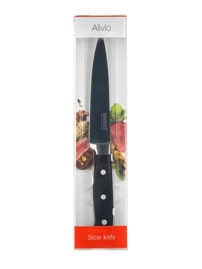Nůž plátkovací ALIVIO. Nůž je vhodný pro každodenní použití. Ocelové nože patří mezi nepostradatelné pomocníky v každé kuchyni. Bez kvalitního nože si lze jen těžko představit vaření.