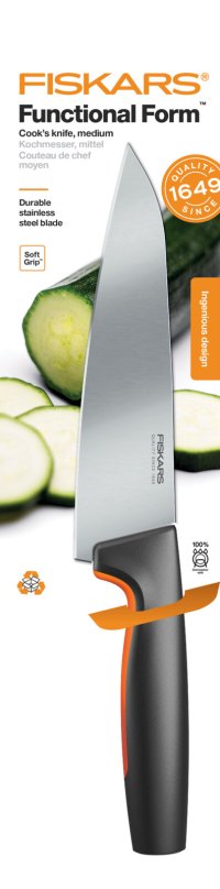 • Střední kuchařský nůž Fiskars Functional Form ™ je navržený pro pohodlné používání a snadnou údržbu