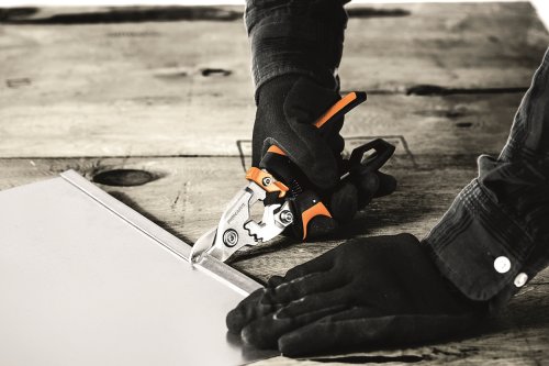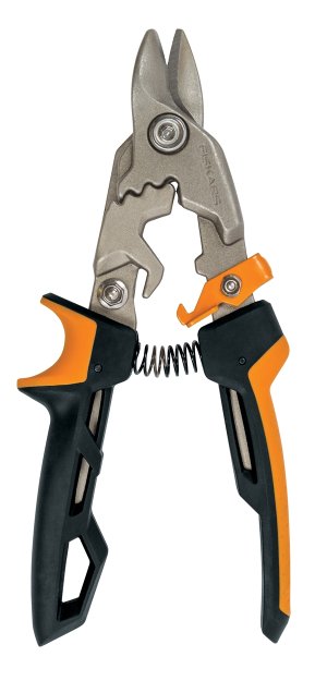 Převodové nůžky na plech s krátkou čepelí pro zvýšení kapacity střihu. Jsou ideální pro stříhání různých odolných materiálů, včetně plechu, potrubí, sádrokartonových rohů, kovových svorníků, lišt, podhledů, římsových desek, okapových lišt, okapů a dalších materiálů. Mají čepele s patentovanou technologií PowerGear - převodový systém, který poskytne o 40 % více síly, zejména v nejtěžší části střihu. Offsetové čepele umožňují stříhání středem plátu, zatímco ruka je bezpečné mimo ostrý kov. Střižná kapacita: ocel válcovaná za studena až do tloušťky 1,518mm nebo nerezovou ocel až do tloušťky 0,911 mm. Délka střihu: 2,54 cm. Výška: 25 mm, délka: 293 mm, šířka: 102 mm, hmotnost: 400 g. Záruka: 5 let.