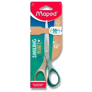 Nůžky Maped Smiling Planet Shape velikosti 16 cm mají čepele vyrobené z broušené nerezové oceli.