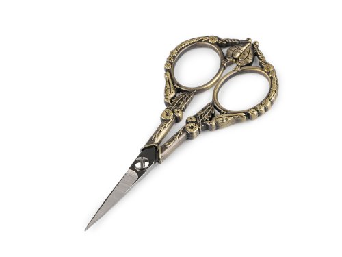 Celokovové nůžky na první pohled upoutají pozornost zdobenou vintage rukojetí. Díky své malé velikosti jsou vhodné na pečlivé stříhání drobných věcí a detailů. Využijete je při vyšívání, stříhání či vystřihování papíru apod.