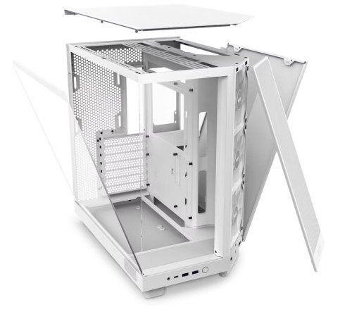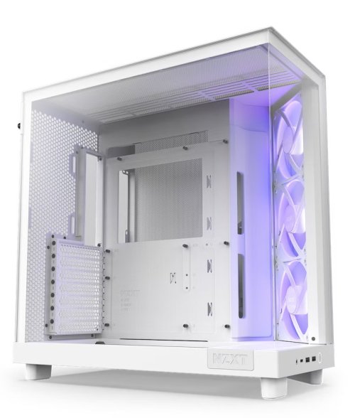 Inovativní dvoukomorová PC skříň NZXT H6 Flow RGB, ve které to komponenty mohou naplno rozbalit. Model disponuje prosklenou bočnicí a čelem, což umožňuje ničím nerušený pohled do nitra sestavy a vizuální kontrolu komponent během chodu. Současně umožňuje také pohodlnou a rychlou výměnu součástek. Provedení skříně Middle Tower i přes menší rozměry přináší dvoukomorový design, který zlepšuje celkový tepelný výkon a podporuje celkově přehledné uspořádání.