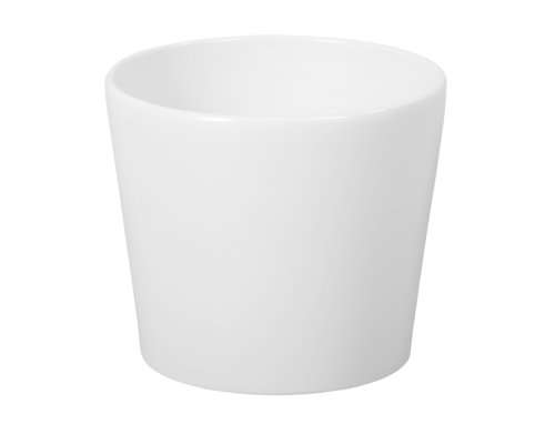 Hladký glazovaný lesklý jemně kónický keramický obal. Vhodný pro květináče s rostlinami, vánoční svícny a pro jiné dekorace. Obal se používá v interiéru. Průměr: 15 cm, výška: 13 cm. Barva: bílá.