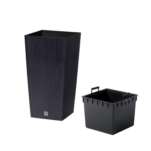 Vysoký plastový obal na květník s texturou imitující ratanový výplet. Tento obal je skvělým doplňkem stylových interiérů. Je vhodný do interiéru i exteriéru, je odolný vůči UV záření. Součástí je černá vnitřní vložka. Barva: antracitová. Rozměry: 27 x 27 cm, výška: 50 cm.