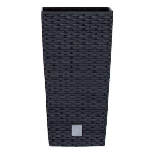 Vysoký plastový obal na květník s texturou imitující ratanový výplet. Tento obal je skvělým doplňkem stylových interiérů. Je vhodný do interiéru i exteriéru, je odolný vůči UV záření. Součástí je černá vnitřní vložka. Barva: antracitová. Rozměry: 33 x 33 cm, výška: 61 cm.