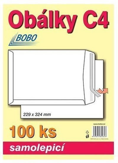 Obálky 229x324 mm, balení 100 ks.<br> <br> Balení klasických poštovních obálek ve formátu C4. Balíček obsahuje 100 kusů samolepicích obálek.