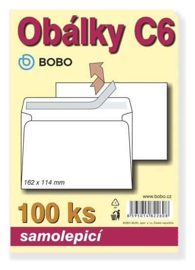 Obálka C6 samolepicí 100ks v balení.br brBalení klasických poštovních obálek ve formátu C6. Balíček obsahuje 100 kusů samolepicích obálek.