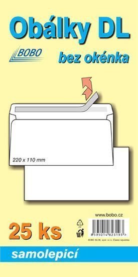 Obálky 20x110 mm, balení 25 ks.<br> <br> Balení klasických poštovních obálek ve formátu DL. Balíček obsahuje 25 kusů samolepicích obálek bez okénka.