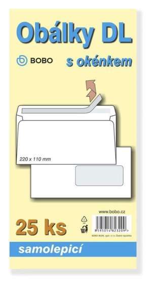 Obálky 220x110 mm, balení 25 ks.br brBalení klasických poštovních obálek ve formátu DL. Balíček obsahuje 25 kusů samolepicích obálek s okénkem.