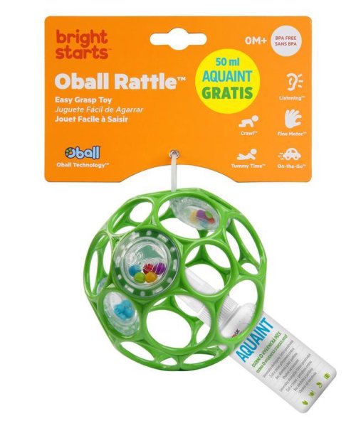 S chrastítkem od Oball vaše děťátko zažije spoustu zábavy při získávání prvních dovedností. Toto oceněné balónkové chrastítko se stane oblíbenou hračkou děťátka. Jednoduchý design od Oball zajišťuje to nejjednodušší uchopení i pro ty nejmenší ručky, což vaše děťátko bude těšit. Míček má 29 dírek, které právě umožní děťátku snadné uchopení. Je vyroben z lehkého materiálu, proto míček nebude těžký pro drobné ručky. V míčku se nacházejí tři chrastítka vyplněná barevnými korálky, která vydávají zábavné zvuky už při sebemenším zatřesení. Tyto zvuky neustále povzbuzují děťátko, aby míček drželo v rukou a třáslo s ním.
