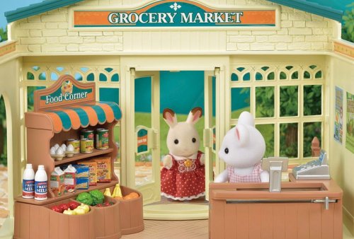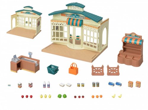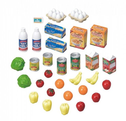 Obchod s potravinami s cihlovou zdí a zelenou střechou. Obchod je vybaven pokladním pultem s funkčním prodejním pásem a regálem s mnoha produkty. Produkty můžete umístit do prodejního regálu a nakupování může začít! Nesmí chybět nákupní košík. Vybrané zboží umístěte na prodejní pás u pokladny a pomocí posuvné páčky rozpohybujte pás a nákup se přesune do nákupního košíku. Jak snadné! Nakupování je velká zábava. Podlaha a stěny obchodu lze připevnit dvojím způsobem - uvnitř nebo vně obchodu. Tím změníte dispozici prodejny a můžete si užívat více zábavy. Obchod s potravinami má stejnou velikost podlahy jako Patrový dům s červenou střechou (5302, prodává se samostatně). Pospojováním domečků získáte nové možnosti k hraní. Nezapomeňte na Základní patrový dům (5242, prodává se samostatně). Produkt obsahuje: podlahu, která lze umístit uvnitř nebo vně obchodu, 2 stěny, které můžete též umístit uvnitř nebo vně obchodu, prodejní regál, prodejní pult s pokladnou, skenerem a funkčním prodejním pásem, nákupní košík, nákupní tašku, nákupní kartu, 2x vejce, 2x malé konzervy, 2x mléko, jablečný džus, pomerančový džus, 2x sušenky, 2x cereálie, 3 jablka, 3 papriky, 2x hlávkový salát, 3 rajčata, 2 banány a 3 pomeranče. Figurky nejsou součástí produktu. Dům je kompatibilní se stropním světlem 5528. Věk: 3+