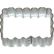 Vykrajovátko ve tvaru obdélníku s ozdobným vroubkováním. Rozměry 4,8 x 3,5 cm.