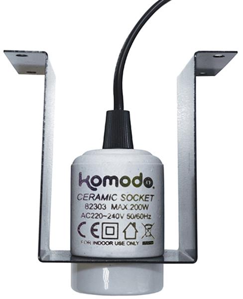 Žáruvzdorná keramická objímka Komodo Ceramic Lamp Fixture and Mounting Bracket s kovovou konzolou umožňuje snadnou a bezpečnou instalaci výhřevného nebo světelného zdroje v teráriu. Objímka má dlouhý napájecí kabel s vypínačem a zástrčkou (vidlice). Ideálním krytem pro toto svítidlo je kovová klec Komodo Light & Heat Guard (ZB008480). Parametry: max. výkon 200 W patice E27 Rozměry: cca 10 × 10,5 × 6 cm kabel cca 170 cm Upozornění: Před použitím si důkladně přečtěte přiložený návod!