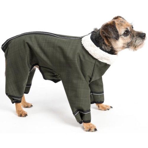Zimní kombinéza LUNA pro psa je navržena tak, aby chránila všechny důležité partie psího těla (včetně končetin) před chladem, větrem, sněhem i deštěm. Funkční materiál – membránový softshell – splňuje hned několik funkcí najednou: je hřejivý, nepromokavý (s omezením), větruodolný a zároveň prodyšný. Svrchní vrstvu tvoří měkká tkanina s hladkým povrchem, který je vodoodpudivý a neulpívá na něm sníh. Pod ní je větru- a voděodolná membrána podšitá příjemným beránkem. Okraje kombinézy jsou obšité elastickým lemem a nohavice lze sepnout praktickými patentkami, aby obleček nikde neodstával a neprofukoval. Pro snadné oblékání a svlékání má kombinéza zip přes celá záda. Za krkem je otvor pro připnutí vodítka k obojku. Samozřejmostí jsou reflexní prvky. Vlastnosti oblečku: