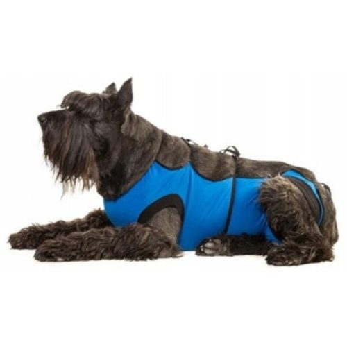 Pooperační obleček je textilní výrobek určený pro feny menších plemen, jako jsou např. jezevčík nebo malý knírač. Jeho úlohou je komfortní ochrana hrudníku a břicha před znečištěním a olizováním. Používá se po chirurgickém zákroku, v dermatologické praxi apod. Chrání před pooperačními komplikacemi (infekce rány, olizování rány a následné předčasné odstranění stehů). Přiložená jednorázová hygienická vložka saje případný sekret z rány a udržuje ránu v suchém prostředí. Obleček pro opakované použití je ušitý z prvotřídní vzdušné hypoalergenní látky, fixační pásky a manžety jsou z čisté bavlny. Použitý design usnadňuje oblékání zvířete a neomezuje ho při fyziologických potřebách. Obleček i manžety jsou z pružného materiálu, fixační pásky se zavazují na hřbetu zvířete. Pro určení správné velikosti oblečku je důležitá vzdálenost mezi předními a zadními končetinami. Výška ani šířka trupu není podstatná. Je-li míra hraniční, doporučujeme pro větší komfort zvířete zvolit větší velikost. Velikost: M/L Délka (cca): 40 cm Údržba: Lze použít opakovaně po důkladné parní sterilizaci nebo vyprání na 90 °C. Barva a vzor: Fotografie je pouze ilustrační. Jde o mix variant. Barvu a vzor zasíláme dle aktuální skladové zásoby.