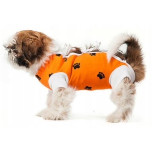 Pooperační obleček je textilní výrobek určený pro feny miniaturních a toy plemen, štěňata a malé kočky. Jeho úlohou je komfortní ochrana hrudníku a břicha před znečištěním a olizováním. Používá se po chirurgickém zákroku, v dermatologické praxi apod. Chrání před pooperačními komplikacemi (infekce rány, olizování rány a následné předčasné odstranění stehů). Přiložená jednorázová hygienická vložka saje případný sekret z rány a udržuje ránu v suchém prostředí. Obleček pro opakované použití je ušitý z prvotřídní vzdušné hypoalergenní látky, fixační pásky a manžety jsou z čisté bavlny. Použitý design usnadňuje oblékání zvířete a neomezuje ho při fyziologických potřebách. Obleček i manžety jsou z pružného materiálu, fixační pásky se zavazují na hřbetu zvířete. Pro určení správné velikosti oblečku je důležitá vzdálenost mezi předními a zadními končetinami. Výška ani šířka trupu není podstatná. Je-li míra hraniční, doporučujeme pro větší komfort zvířete zvolit větší velikost. Velikost: XXS Délka (cca): 19 cm Údržba: Lze použít opakovaně po důkladné parní sterilizaci nebo vyprání na 90 °C. Barva a vzor: Fotografie jsou pouze ilustrační. Jde o mix variant. Barvu a vzor zasíláme dle aktuální skladové zásoby.