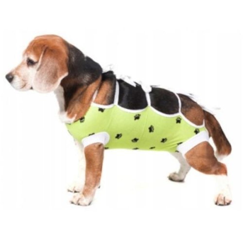 Pooperační obleček je textilní výrobek určený pro psy středně velkých plemen, jako jsou např. bígl, kokršpaněl nebo baset. Jeho úlohou je komfortní ochrana hrudníku a břicha před znečištěním a olizováním. Používá se po chirurgickém zákroku, v dermatologické praxi apod. Chrání před pooperačními komplikacemi (infekce rány, olizování rány a následné předčasné odstranění stehů). Obleček pro opakované použití je ušitý z prvotřídní vzdušné hypoalergenní látky, fixační pásky a manžety jsou z čisté bavlny. Použitý design usnadňuje oblékání zvířete a neomezuje ho při fyziologických potřebách. Obleček má výřez pro penis, aby se pes mohl vyvenčit. Po venčení je možné výřez překrýt klapkou opatřenou šňůrkami.Obleček i manžety jsou z pružného materiálu, fixační pásky se zavazují na hřbetu zvířete. Pro určení správné velikosti oblečku je důležitá vzdálenost mezi předními a zadními končetinami. Výška ani šířka trupu není podstatná. Je-li míra hraniční, doporučujeme pro větší komfort zvířete zvolit větší velikost. Velikost: L Délka (cca): 44 cm Údržba: Lze použít opakovaně po důkladné parní sterilizaci nebo vyprání na 90 °C. Barva a vzor: Fotografie je pouze ilustrační. Jde o mix variant. Barvu a vzor zasíláme dle aktuální skladové zásoby.