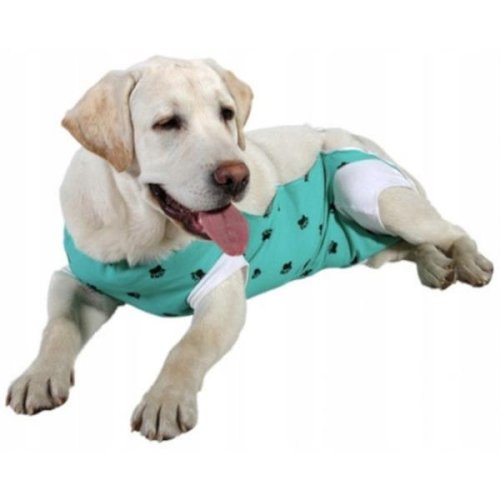 Pooperační obleček je textilní výrobek určený pro psy větších plemen, jako jsou např. německý ovčák nebo labrador. Jeho úlohou je komfortní ochrana hrudníku a břicha před znečištěním a olizováním. Používá se po chirurgickém zákroku, v dermatologické praxi apod. Chrání před pooperačními komplikacemi (infekce rány, olizování rány a následné předčasné odstranění stehů). Obleček pro opakované použití je ušitý z prvotřídní vzdušné hypoalergenní látky, fixační pásky a manžety jsou z čisté bavlny. Použitý design usnadňuje oblékání zvířete a neomezuje ho při fyziologických potřebách. Obleček má výřez pro penis, aby se pes mohl vyvenčit. Po venčení je možné výřez překrýt klapkou opatřenou šňůrkami.Obleček i manžety jsou z pružného materiálu, fixační pásky se zavazují na hřbetu zvířete. Pro určení správné velikosti oblečku je důležitá vzdálenost mezi předními a zadními končetinami. Výška ani šířka trupu není podstatná. Je-li míra hraniční, doporučujeme pro větší komfort zvířete zvolit větší velikost. Velikost: XXL Délka (cca): 59 cm Údržba: Lze použít opakovaně po důkladné parní sterilizaci nebo vyprání na 90 °C. Barva a vzor: Fotografie je pouze ilustrační. Jde o mix variant. Barvu a vzor zasíláme dle aktuální skladové zásoby.