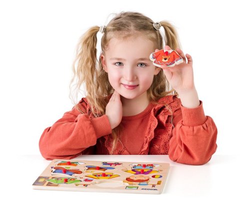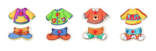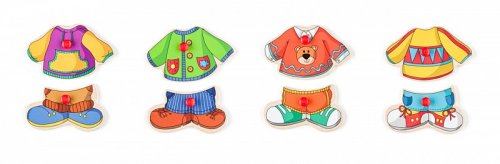 Věk: 3+ | Rozměr: 30 x 22,5 x 1 cm | | Hra na oblékání, kdy se děti učí oblékat svršky a boty, které se k sobě hodí. Slouží i jako jednoduché puzzle.