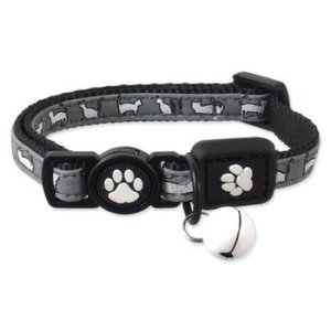 Nylonový obojek s nášivkou a bezpečnostním zámkem.