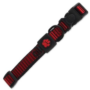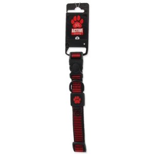 Pevný nylonový obojek s gumovou sponou k nastavení velikosti.
