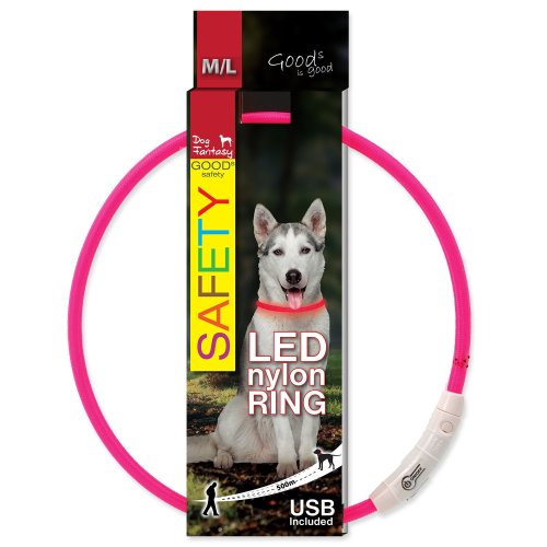 Obojek Dog Fantasy LED nylon růžový 65cm