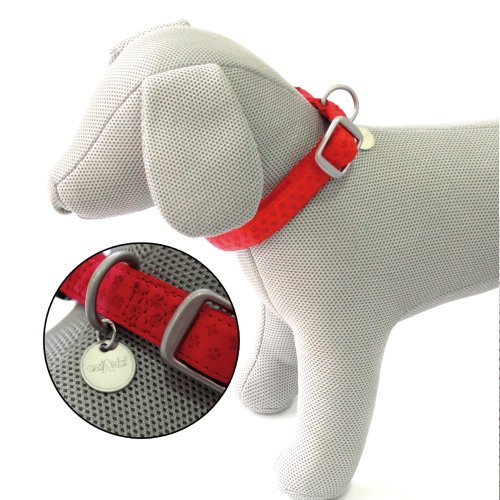 Elegantní a odolný obojek vyrobený z měkké imitace kůže s reliéfními dekoracemi.
