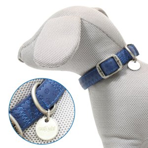Elegantní a odolný obojek vyrobený z měkké imitace kůže s reliéfními dekoracemi.