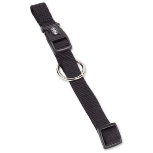 Jednoduchý nylonový obojek vhodný pro štěňata a malá plemena psů. Obojek má odolnou plastovou sponu. Kroužek na upnutí vodítka odlehčuje max. tlak na plastovou sponu. Rozměry: obvod krku: 13 – 20 cm šířka: 10 mm Barva: černá