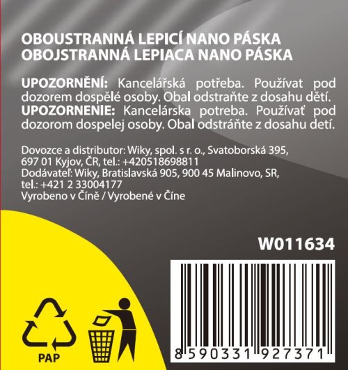 Nanoadhezivní průhledná páska je znovupoužitelná oboustranná páska. Nezanechává žádné stopy a nepoškodí vaše stěny a povrchy.
