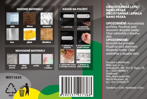Nanoadhezivní průhledná páska je znovupoužitelná oboustranná páska. Nezanechává žádné stopy a nepoškodí vaše stěny a povrchy.