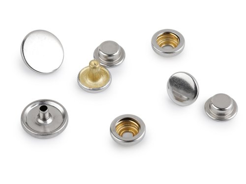 Oboustranné kovové druky z nerezové oceli využijete jako zapínání na oděvy i doplňky (sportovní bundy, vesty, nepromokavé kabáty, tašky, batohy apod.). Nýtování se provádí pistonem a lisem, který je pod kódem 070241 nebo 790770. Nýty jsou vhodné na klasické látky.