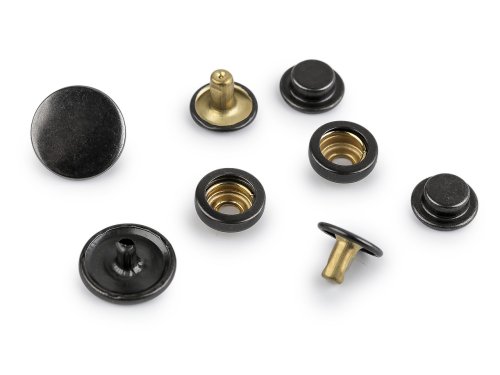 Oboustranné kovové druky Ø15 mm na silné látky nerezové - nikl černý (50 sada)