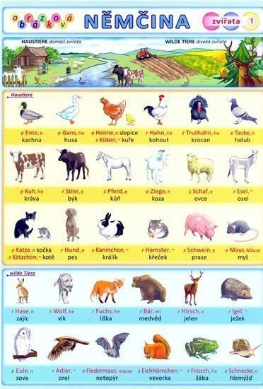 Ilustrovaný slovník zpracovaný dle jednotlivých témat. Názorné ilustrace pomáhají zapamatovat si nová slovíčka. 62 slovíček - zvířata domácí, divoká, exotická, hmyz. Tvary singuláru a plurálu. Ilustrace od Petra Kopla.